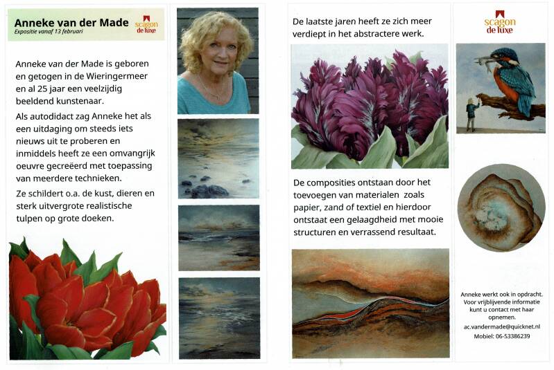 Anneke van der Made exposeert vanaf 13 februari in het Scagon Theater. Tijdens openingsuren kan er gevraagd worden om de expositie te bekijken.